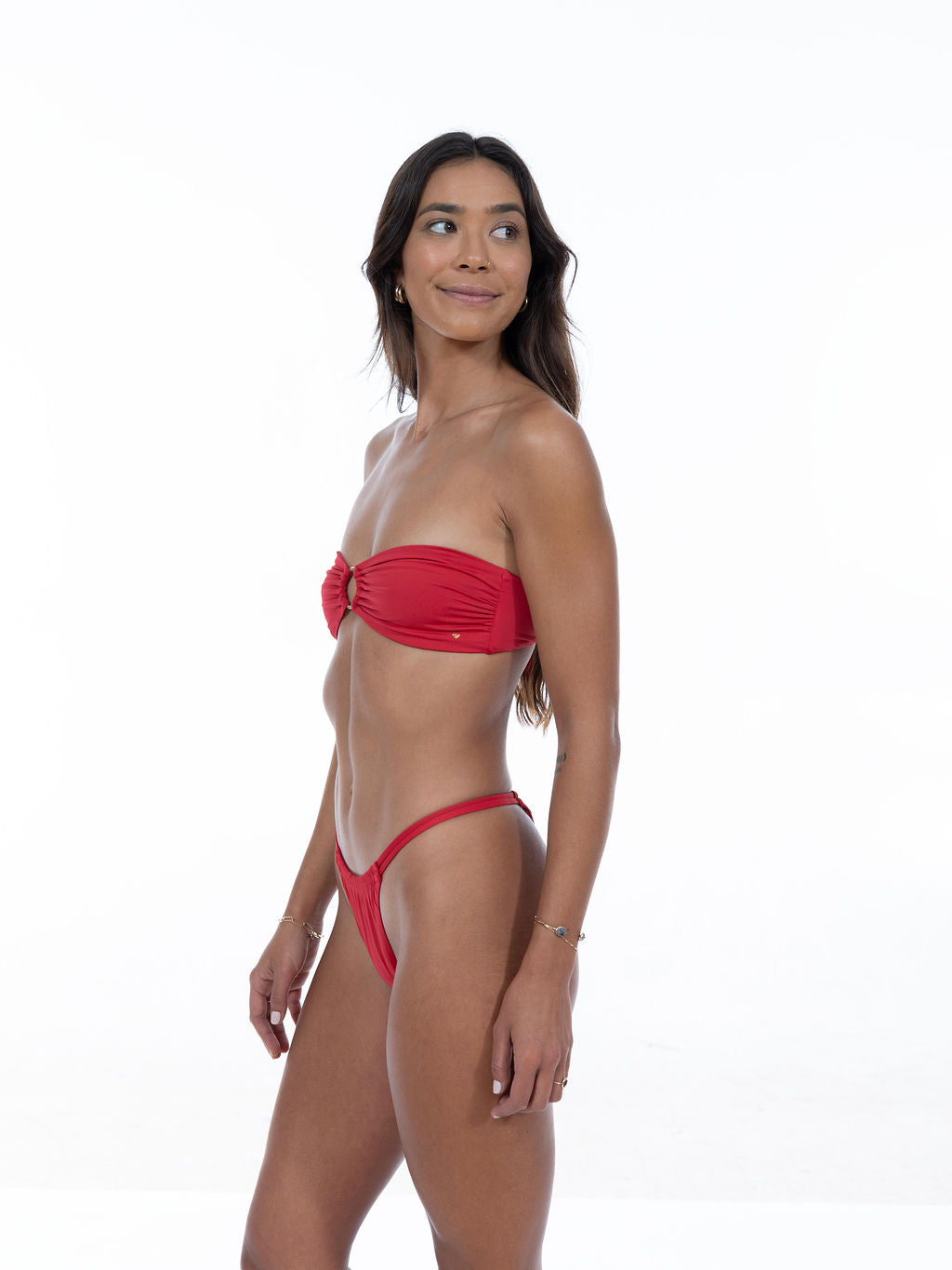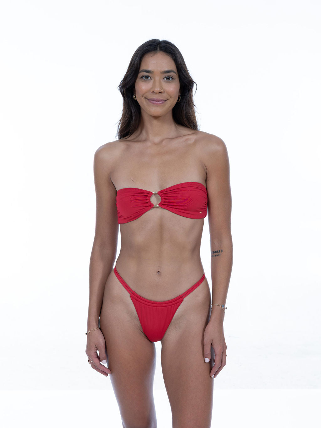 This is a double-stringed cheeky pair of bottoms with adjustable panels for however much coverage you'd like. Plus, they sit high up on the leg for a super flattering fit.