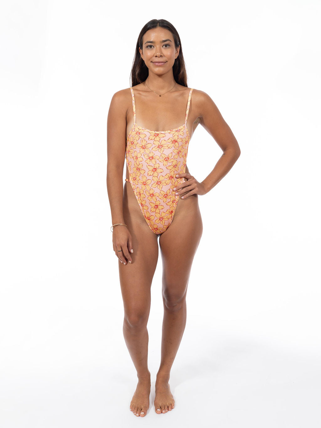 The Sea Goddess one-piece is the perfect mix of coverage and cut outs. Featuring a straight neckline and open back, this suit also offers adjustable straps both over the shoulders, across the back, and at the hips.