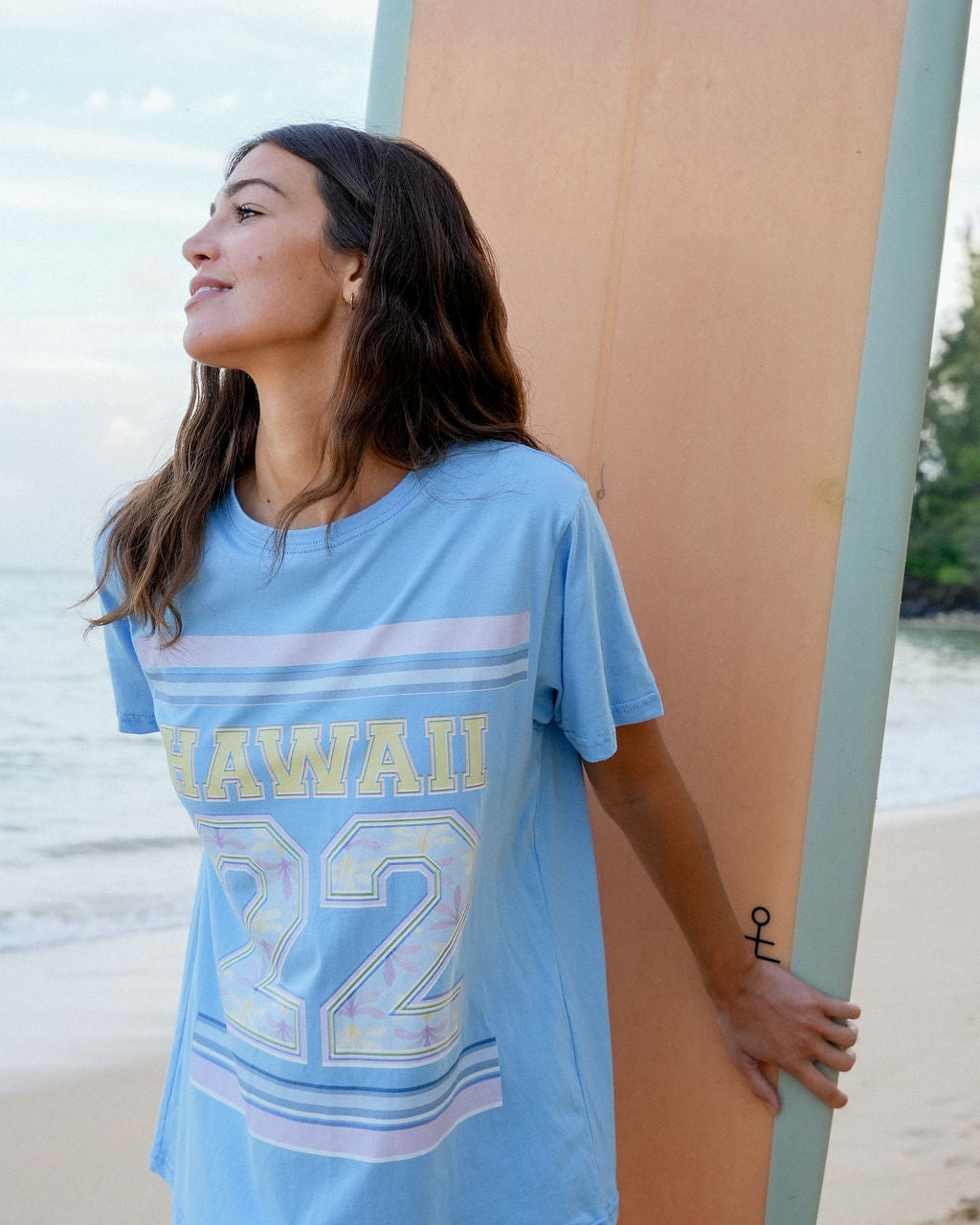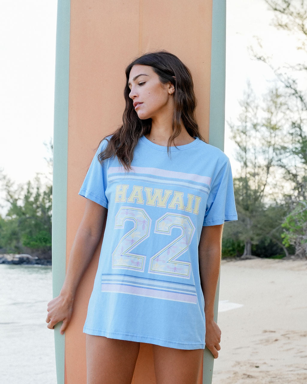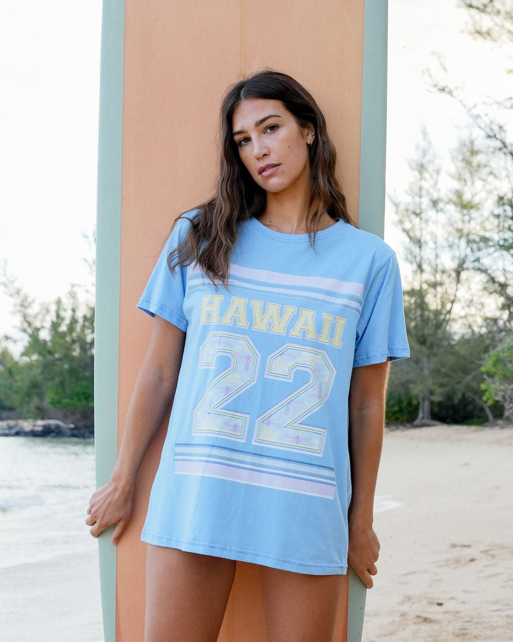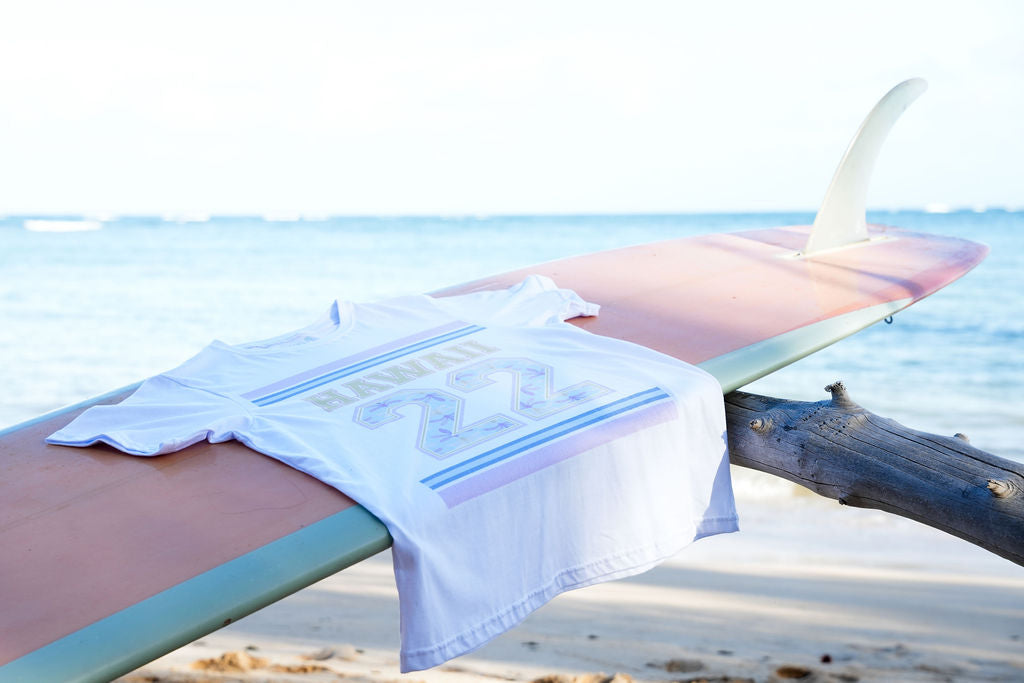The Hawaii 22 T-Shirt is super easy to wear as a shirt or you can wear it oversized as a cover up. inside of the number 22 we add our new Naupaka print.