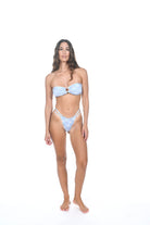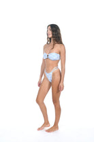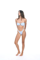 The Sea Goddess top is the bandeau of your dreams. With a ring detail in the front and strings that tie in the back, it's the perfect suit for laying in the sun.