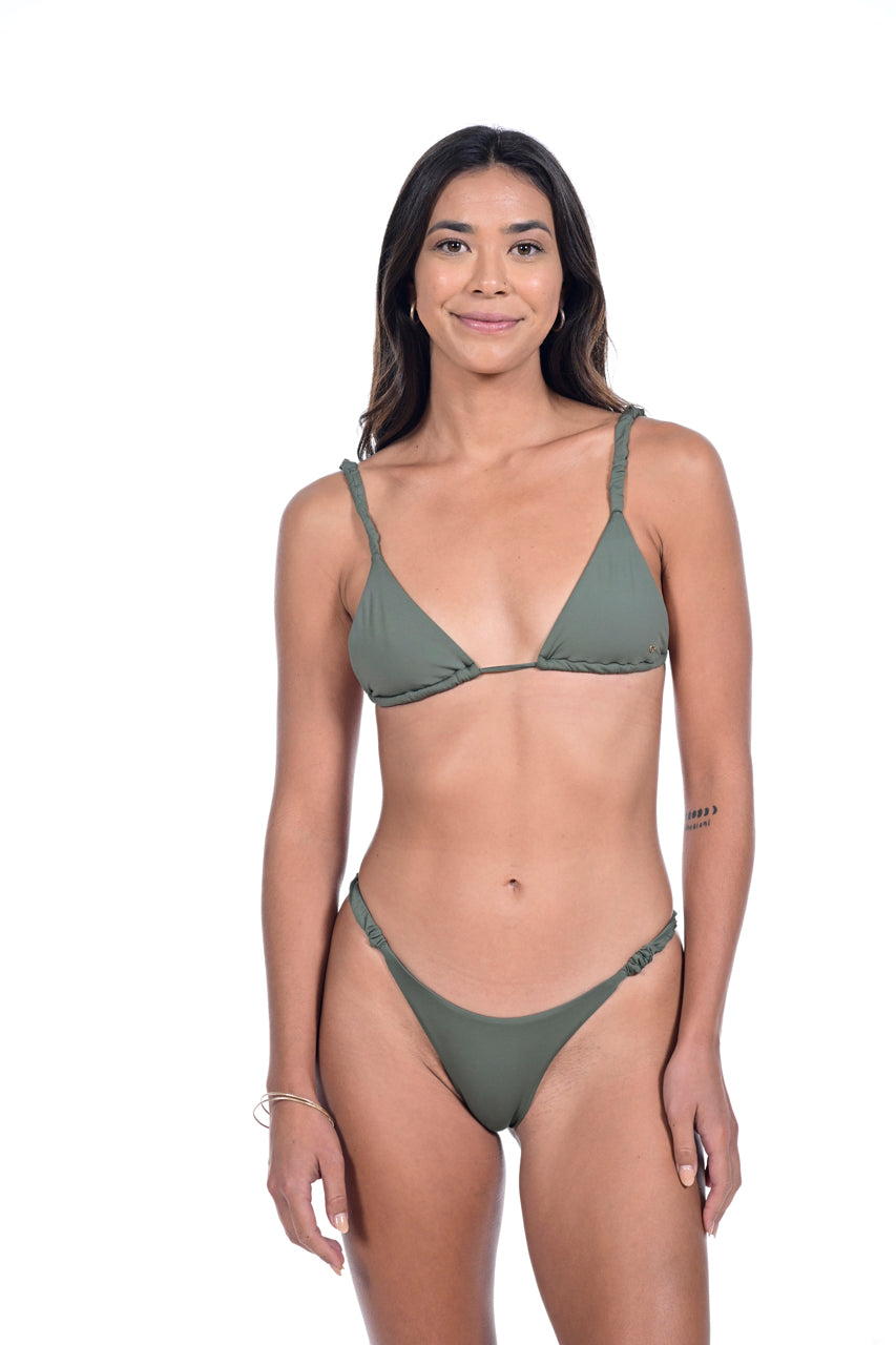 The Ipanema bottoms have ruching on the sides and also on the butt for a super flattering effect. This style is a Brazilian cut and sits high on the leg.