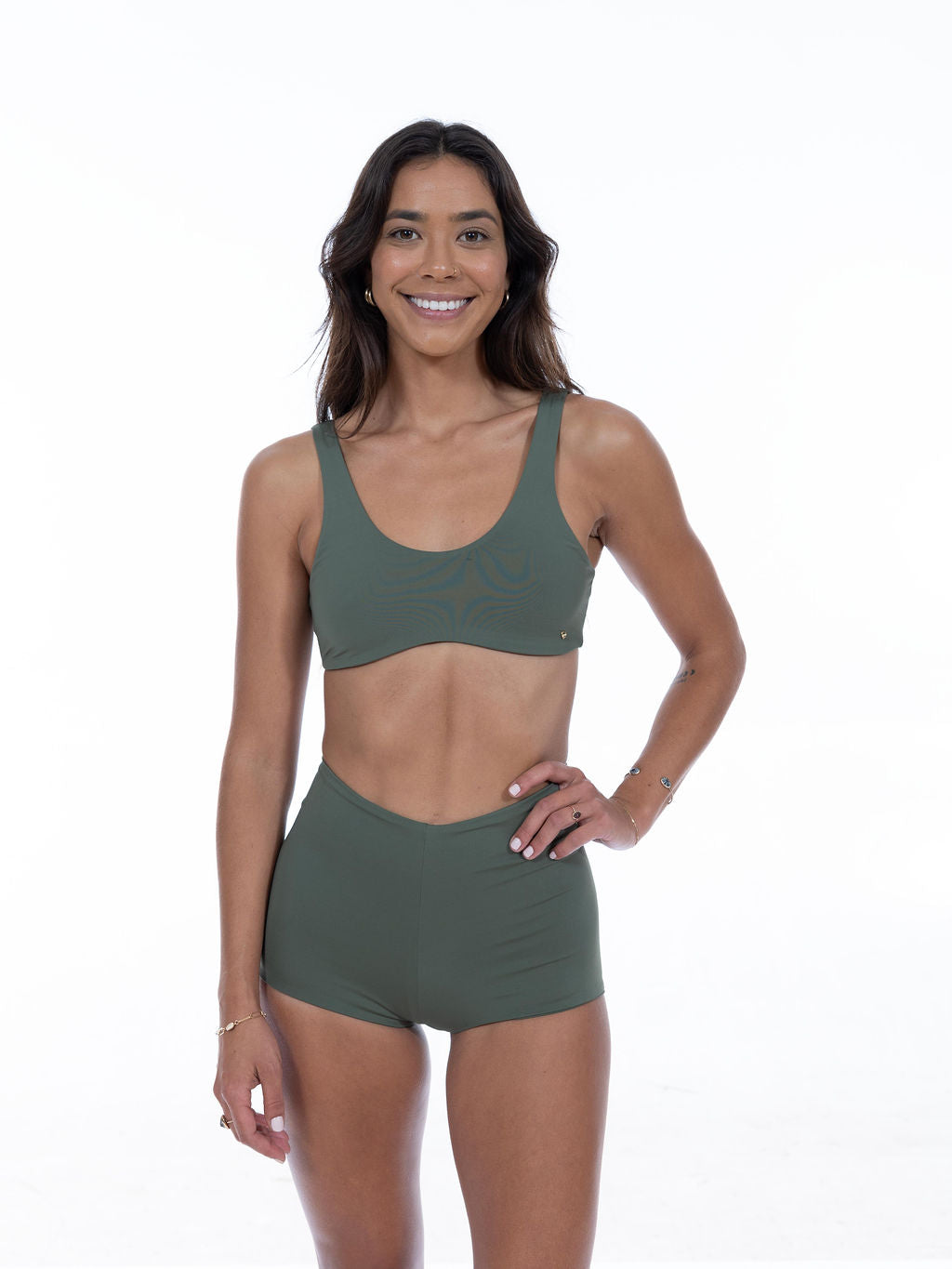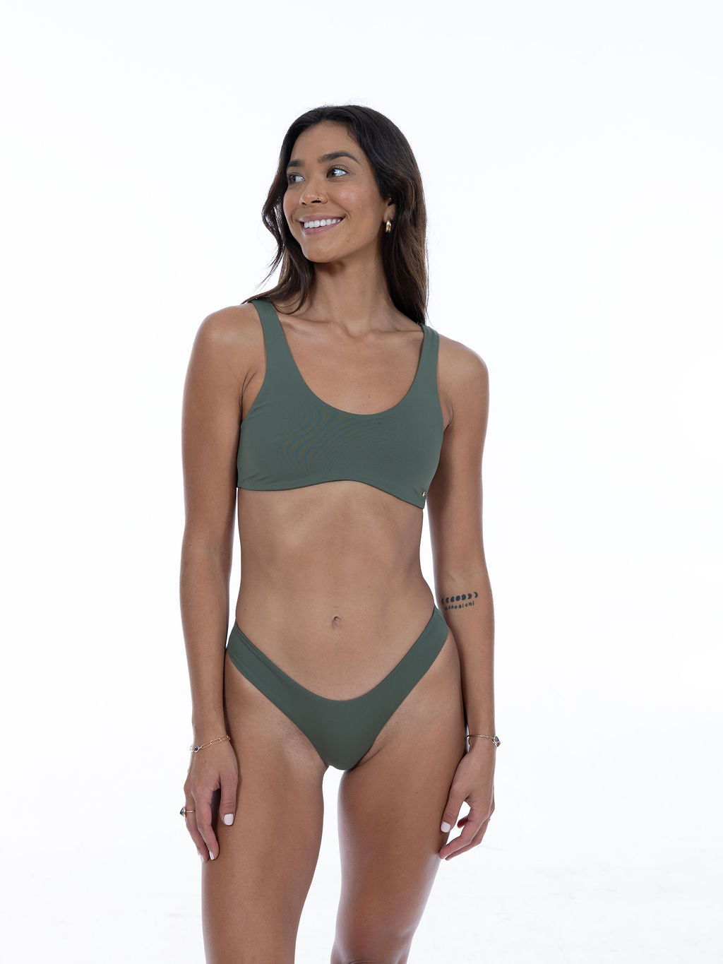 The Hana top is a sporty top for you to wear as a bikini top when you are having fun in the water, but you can also wear to your yoga class.Versatile, that classic sporty top.