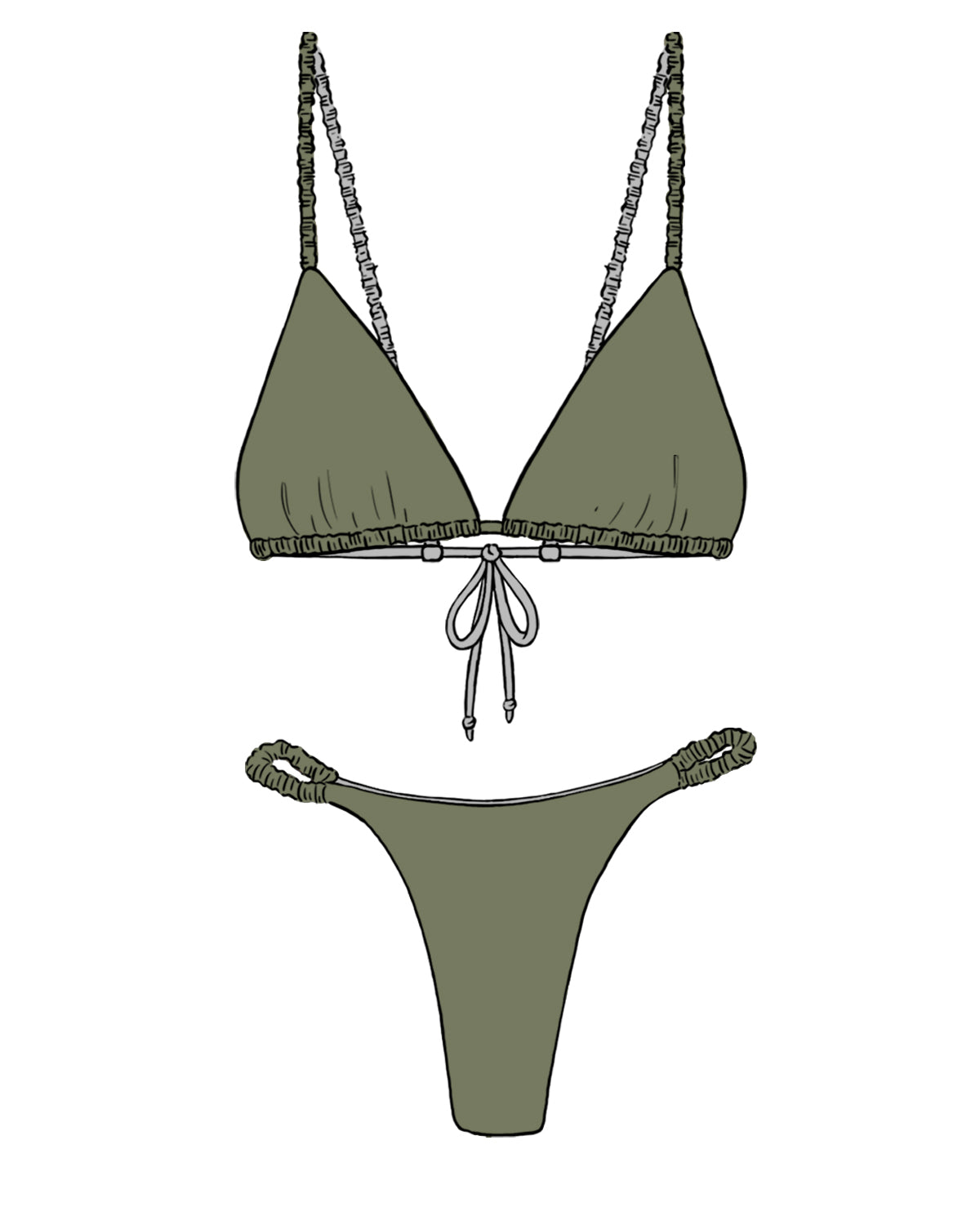 The Ipanema is a chic triangle style top that features scrunchy adjustable straps for a better fit. Designed to tie in the back rather than around your neck, it offers plenty of comfort without any risk of tension.